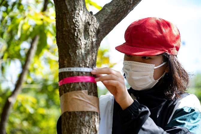 森が吸収した二酸化炭素の量を把握する活動を行っています。