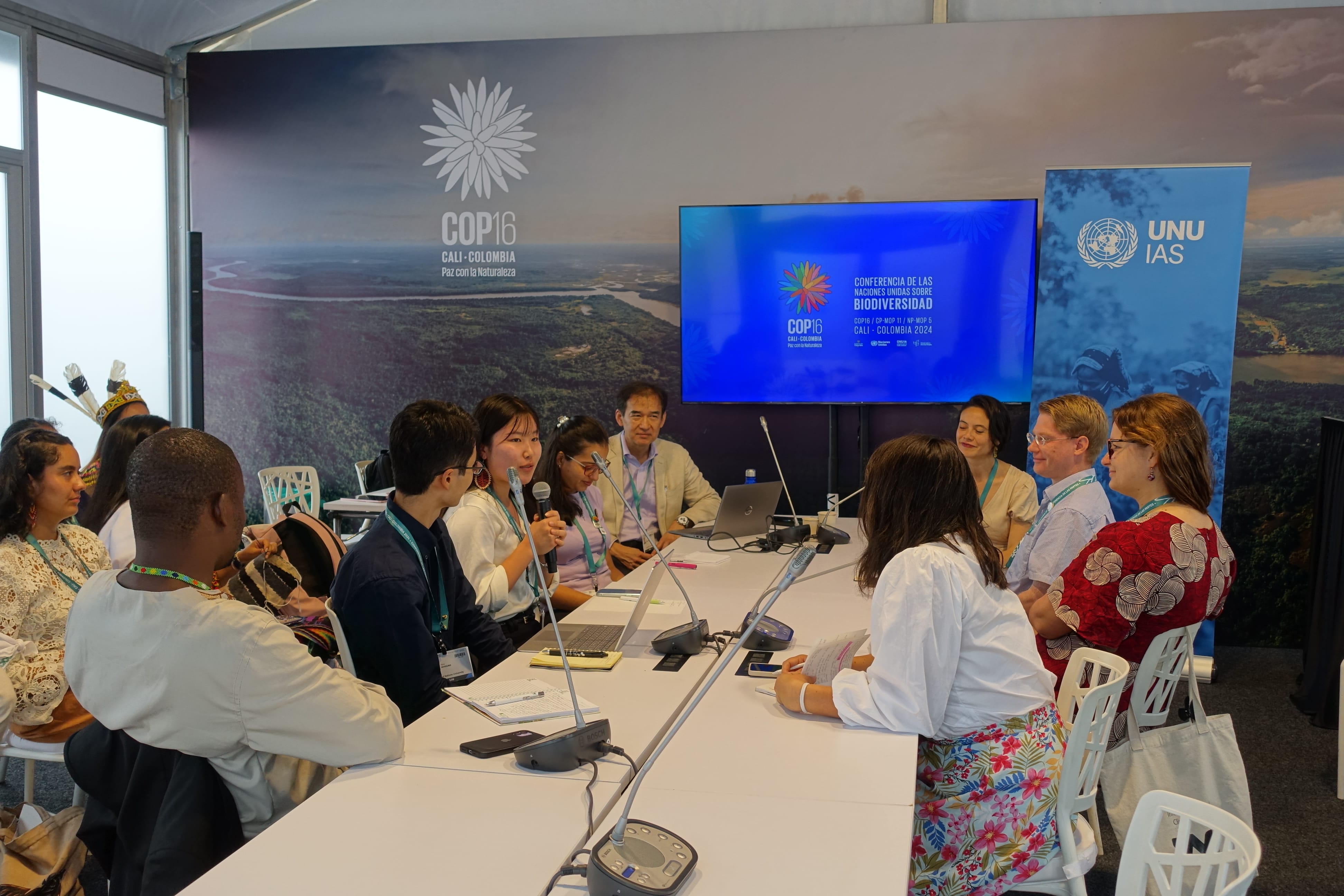2024年、生物多様性保全のためにグローバルで活躍する環境リーダーの育成を目的とし、国連大学と連携してGlobal Youth MIDORI Platform (GYM)を立ち上げました。 第1回の国際研修は8か国から20名の学生が参加し、その中から2名がコロンビアで開催されたCOP16の会場で異文化交流、ディカッション等に参加しました。