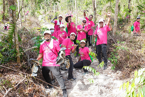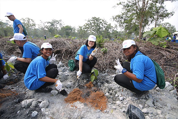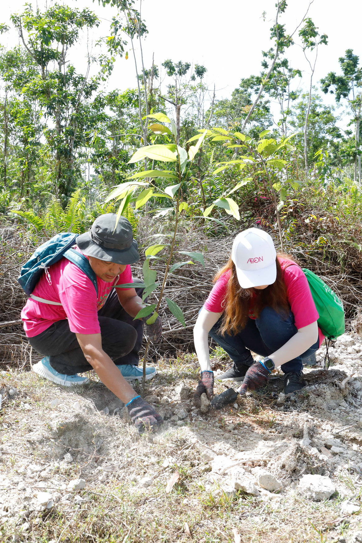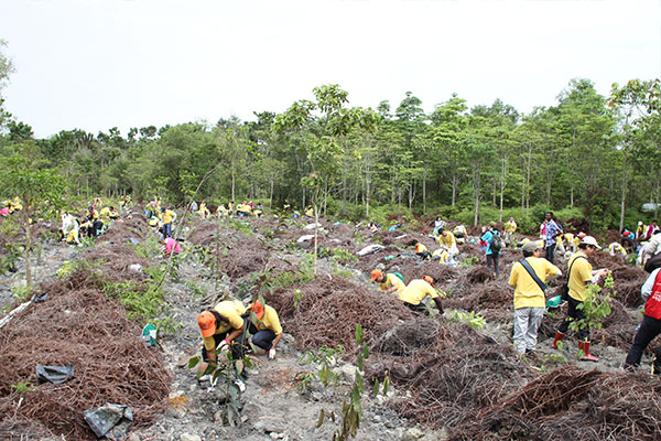 植樹地はスズの採掘跡地として長く放置され、表土が浅く、背の高い木々が成長しにくい環境となっています。このような 環境の土壌改良、生態系の回復のための植樹を実施します。