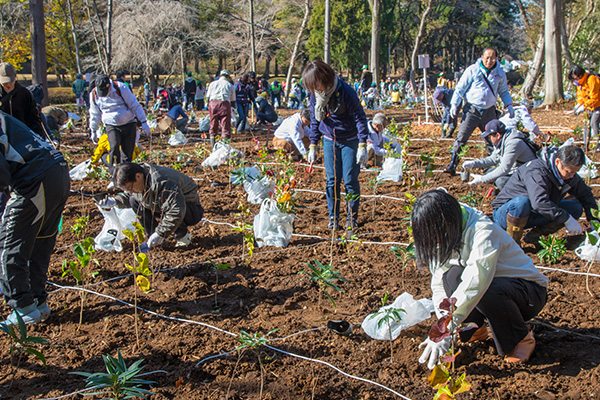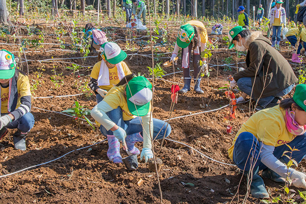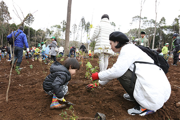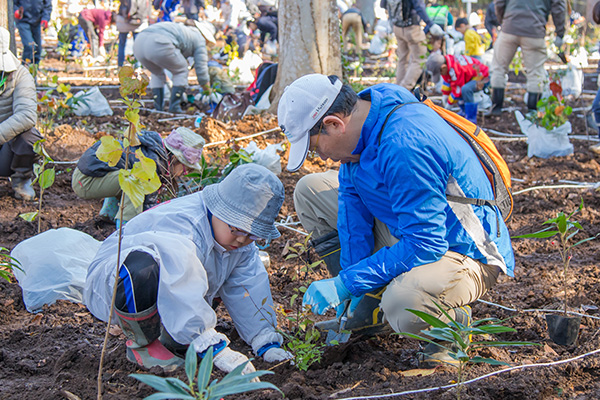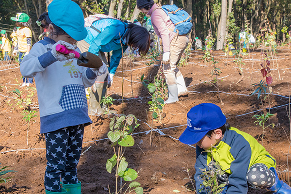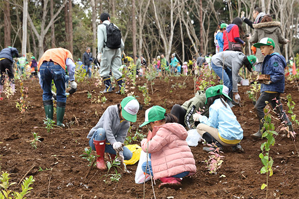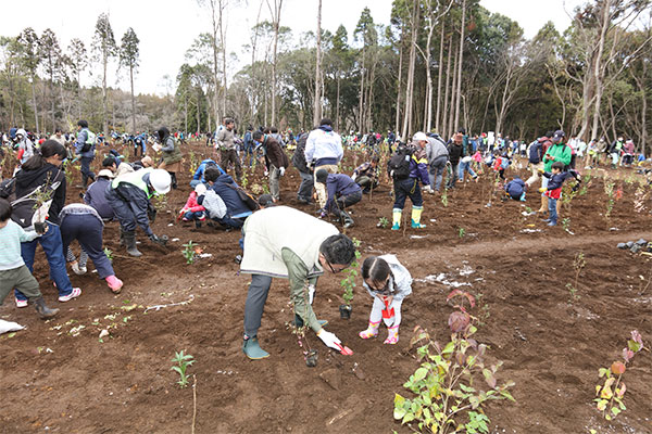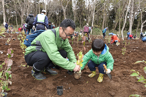 千葉市と当財団は、2016年2月に「千葉市における森林整備に関する協定」を締結し、3年計画で植樹を行っ ています。第1回は「富田都市農業交流センター」にて、第2回と最終回は「泉自然公園」にて植樹を実施しました。これにより、3年間の植樹本数は、合計25,000本となります。