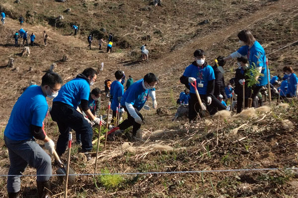 当財団は、森林の再生を目指し、2020年12月に林野庁の「モデルプロジェクトの森における森づくり活動」について、林野庁関東森林管理局と協定ならびに君津市と覚書を締結しました。本協定に基づき、「君津イオンの森づくり」を推進し、ヒメコマツや君津市の花であるミツバツツジをはじめ、千葉県に自生する17樹種、計6,000本の植樹を実施するとともに植樹地の整備を行う予定です。