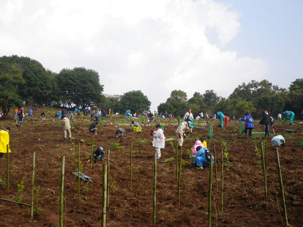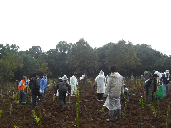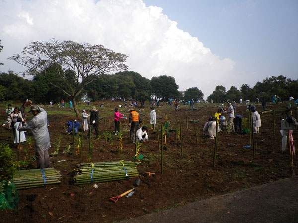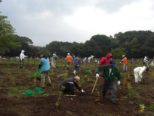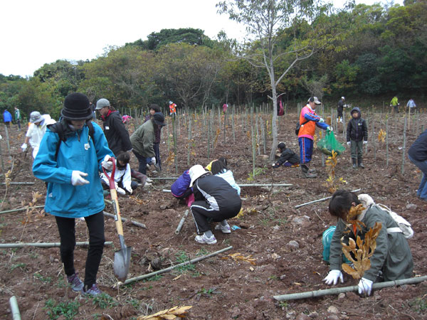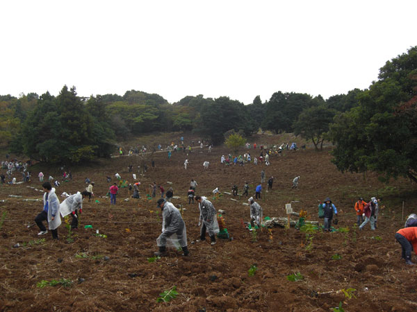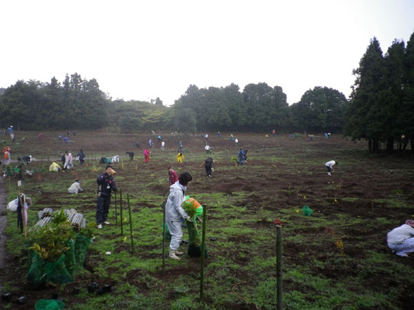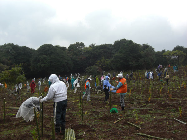 1946年の入植による開墾と1978年の無線送信所の整備により森の木々が切倒され、水源涵養の機能が低下。また、無線送信所は1999年に廃止され、活用がされないまま荒廃していました。水源涵養としての森の再生を目指し、植樹3年・メンテナンス2年の5ヵ年計画で植樹を実施しました。