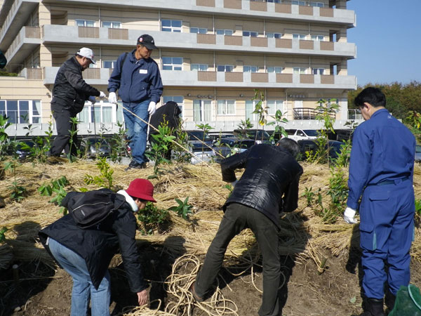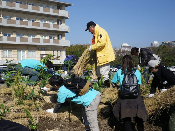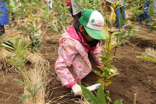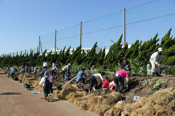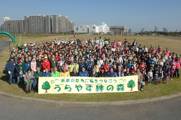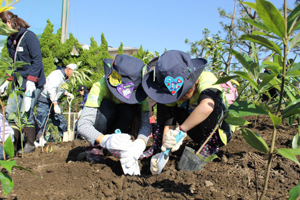 東日本大震災で千葉県浦安市は埋立地を中心に液状化により甚大な被害を受けました。その際に噴出した土砂を沿岸部の植樹に活用することで、緑の防潮堤を作っていくとともに、暮らしにより潤いを与えてくれるよう植樹を実施しました。