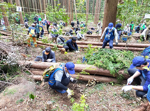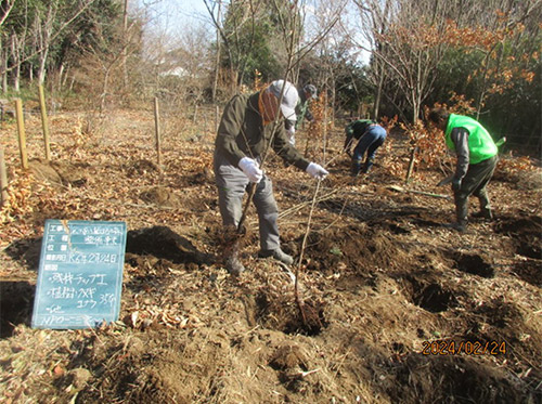 にっさい堀込市民の森の主要樹木であるヒノキを選別処理(伐採)のうえ、跡地に落葉樹を植樹、生物多様性に富んだ森として次世代に引き継ぐ
