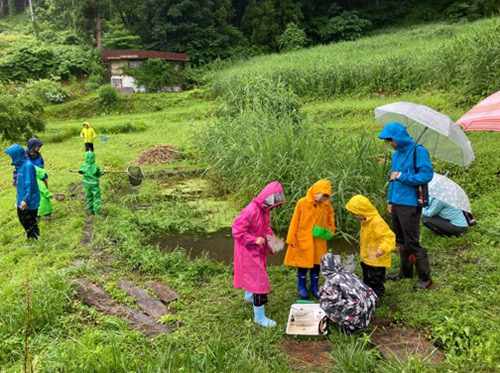 清沢の棚田で、昔ながらのコメ作りを体験しながら、モリアオガエルの卵やアカハライモリも見つけてみよう。