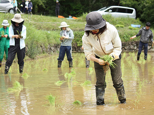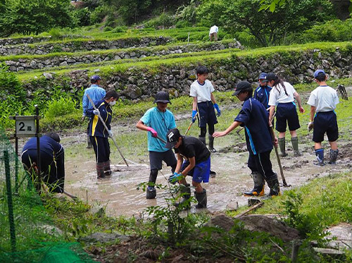 静岡文化芸術大学 引佐耕作隊の久留女木の棚田での米作りによる棚田保全と地域交流