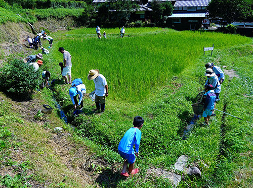 「生物多様性に富んだ名古木の棚田を未来の子どもたちへ」を掛け声に、自然塾を開催して仲間を増やし、生き物いっぱいの田んぼでの米作りと、資源の循環利用を軸とした里山管理を継続発展して次代へつなぐ。